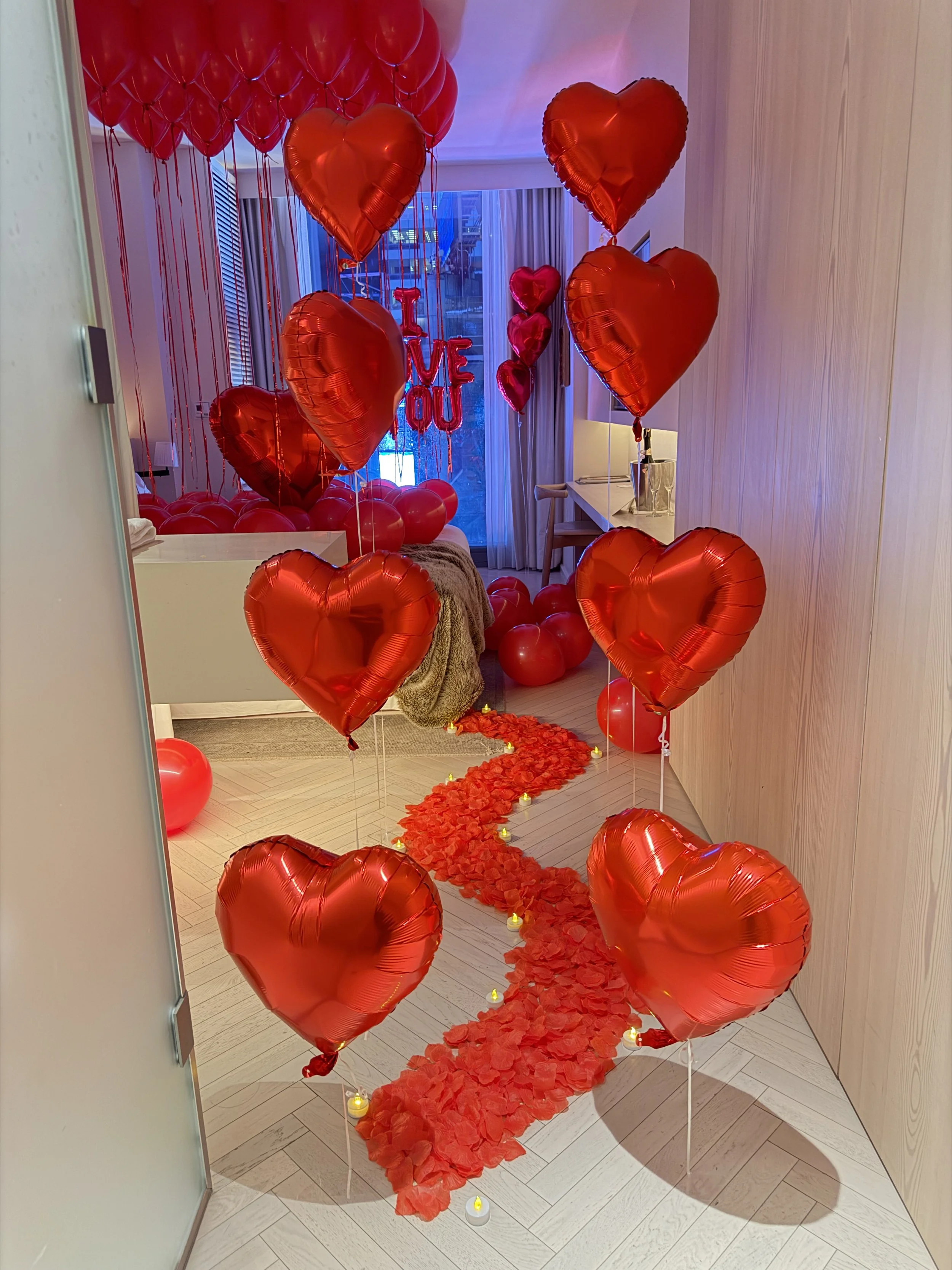 Walkway Entrance ( 6 Helium Heart Balloons, 3,000+ Rose Petals, 6-8 Floating Candles In Glass Vases